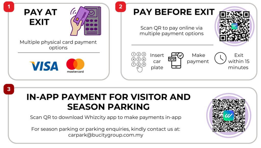 Please call the Carpark Helpdesk at +603-7733 6340 for more information.